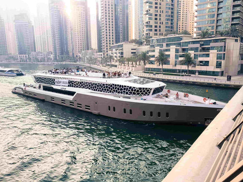 Savor Dubai's sunset luxury yacht tour! A visual & culinary delight.