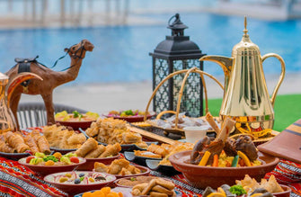 Or if you want to savor the luxurious iftar buffet with breathtaking view of Ain Dubai, then the iftar at A.O.C., located in the Sofitel Jumeirah Beach Hotel, is a perfect choice. Try luxurious infusion of Middle Eastern, Turkish and Moroccan flavors. Enjoy a rich selection of hot and cold mezzes, mixed grills, and sweets, all prepared by skilled chefs. With the twinkling lights of Ain Dubai in the background and the whole spread of Ramadan food, you can have a night filled with culture, flavors and warm hospitability.
