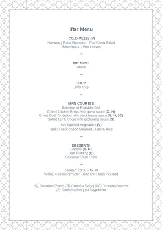For those who prefer a more private and intimate Ramadan experience, they must experience Luxurious Ramadan Iftar at The Pods, Bluewaters Island. This restaurant offers traditional Arabic and international dishes. You can start with cold mezze, grilled meat and rice. Complete the meal with a selection of Arabic desserts.