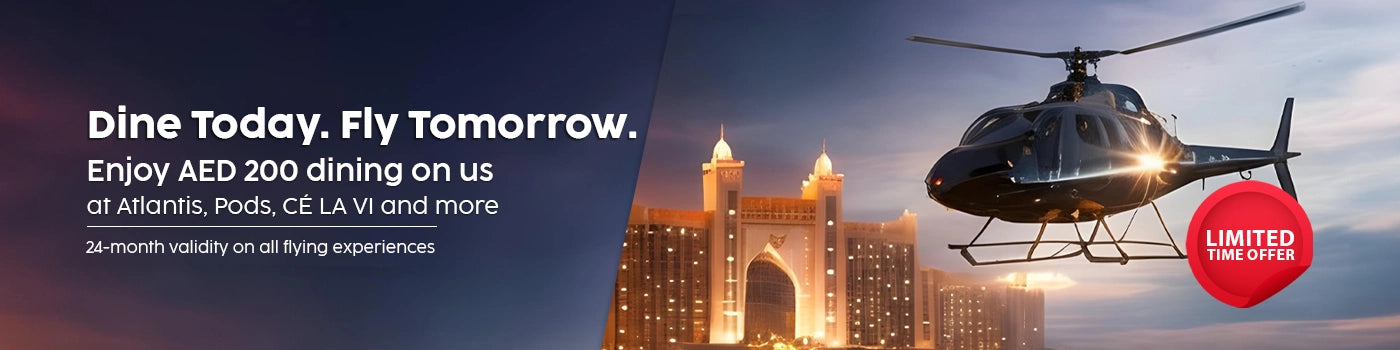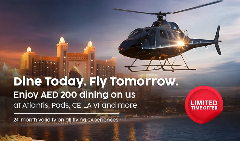 Soar through the sky in the lap of luxury with breathtaking helicopter rides. Soak yourself in panoramic views and take excitement to new heights with helicopter rides in Dubai, Abu Dhabi and Ras Al Khaimah.